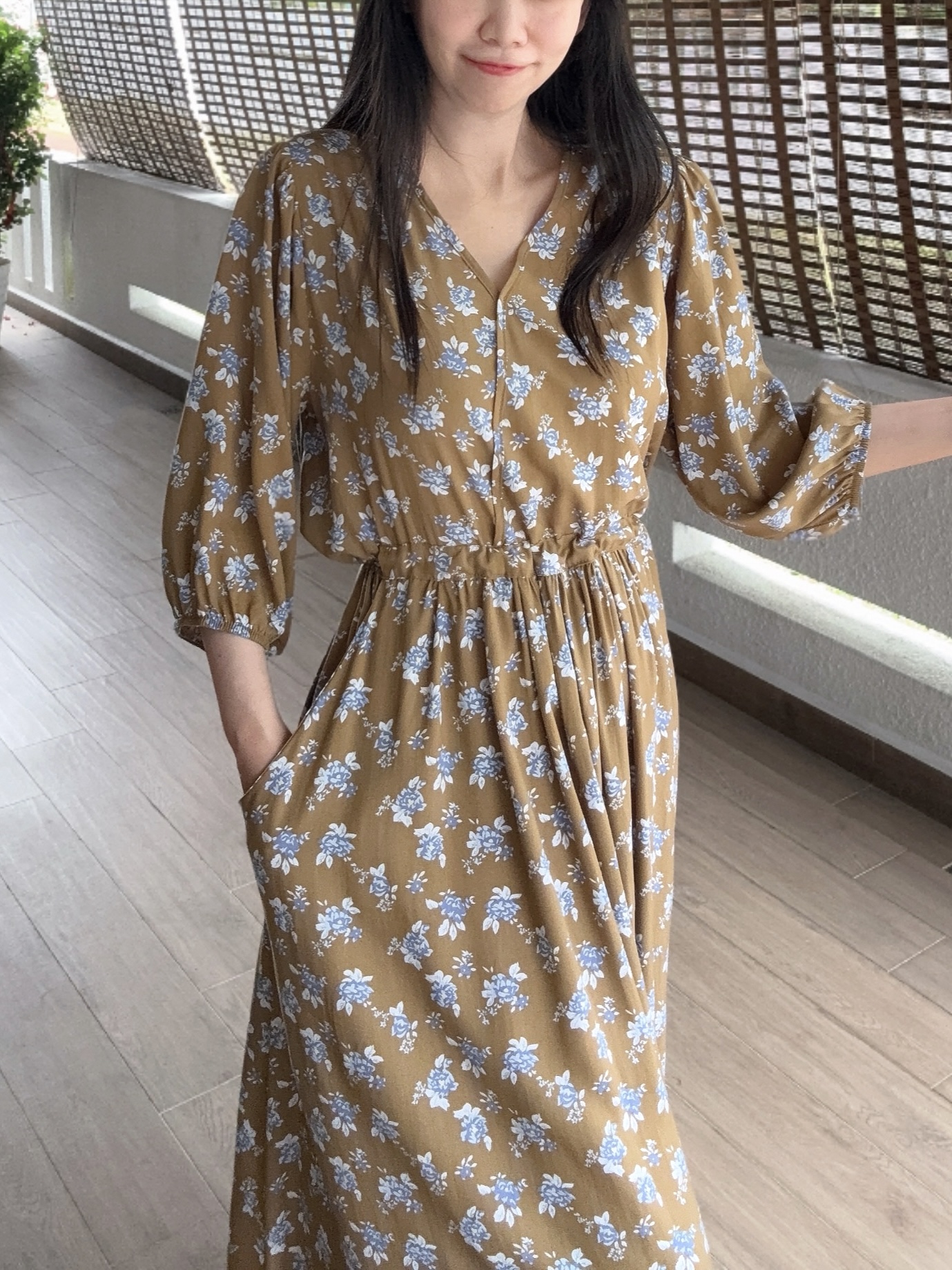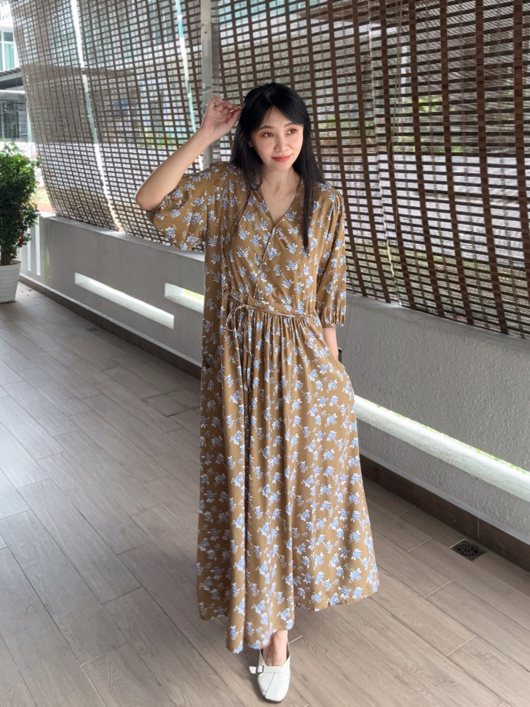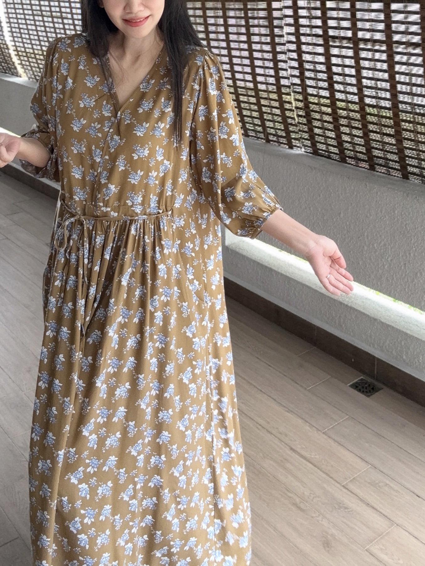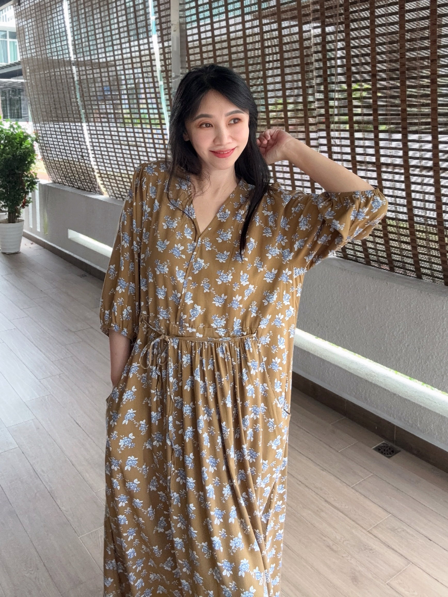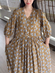 棉绸面料非常柔软垂感,舒适凉快透气。洗后避免烘干,使用自然晒干,下水后缩短8-15㎝正常现象。