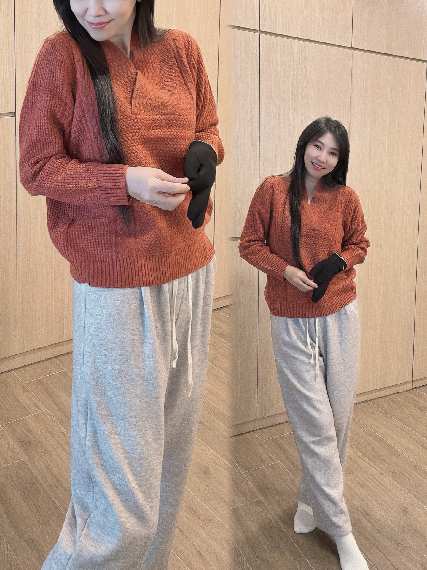 Model NOI 店主 165cm 55kg. 肩Shouder 38,胸Bust 88, 腰Waist 73, 臀Hip 94,选择加大一码上身慵懒感觉XL宽松